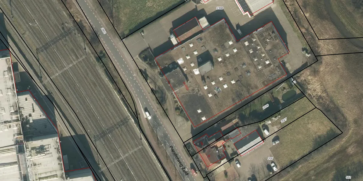Het perceel waarop Parallelweg Zuid 33 staat heeft een oppervlakte van 5746 m². Dit is een zeer groot perceel. De perceeloppervlakte wordt geregistreerd door het Kadaster. Gedetailleerde informatie over de maten van dit perceel kunt u vinden in het rapport Kadastrale kaart met maatvoering van Parallelweg Zuid 33.