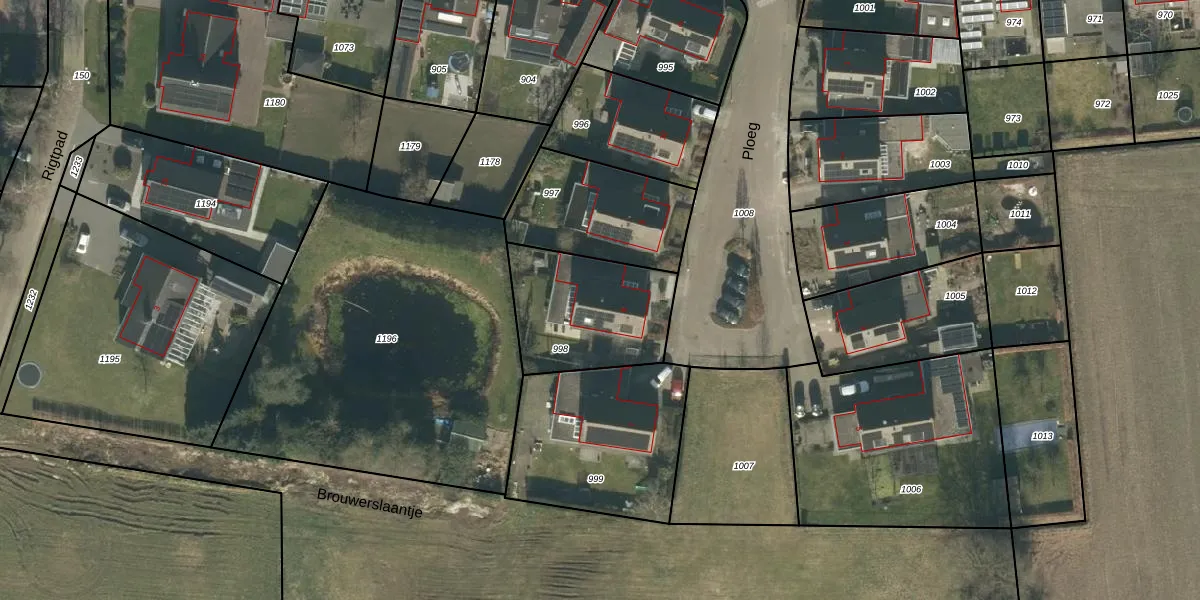 Het perceel waarop Ploeg 8 staat heeft een oppervlakte van 480 m². Dit is een groot perceel. De perceeloppervlakte wordt geregistreerd door het Kadaster. Gedetailleerde informatie over de maten van dit perceel kunt u vinden in het rapport Kadastrale kaart met maatvoering van Ploeg 8.