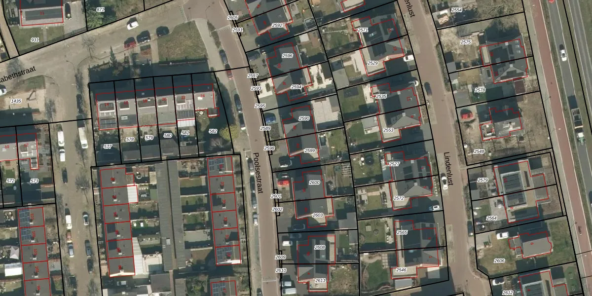 Gebruik de zoekbalk of klik op een perceel voor informatie over de adressen binnen dit perceel.