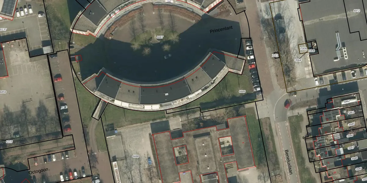 Het perceel waarop Princenlant 135 staat heeft een oppervlakte van 5705 m². Dit is een zeer groot perceel. De perceeloppervlakte wordt geregistreerd door het Kadaster. Gedetailleerde informatie over de maten van dit perceel kunt u vinden in het rapport Kadastrale kaart met maatvoering van Princenlant 135.