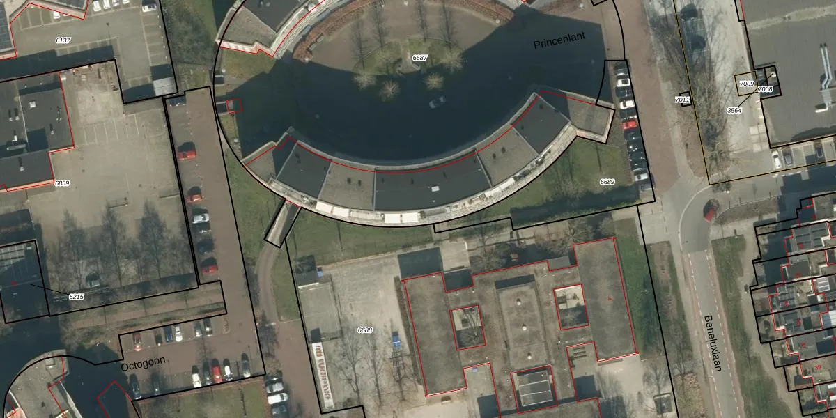 Het perceel waarop Princenlant 146 staat heeft een oppervlakte van 5705 m². Dit is een zeer groot perceel. De perceeloppervlakte wordt geregistreerd door het Kadaster. Gedetailleerde informatie over de maten van dit perceel kunt u vinden in het rapport Kadastrale kaart met maatvoering van Princenlant 146.