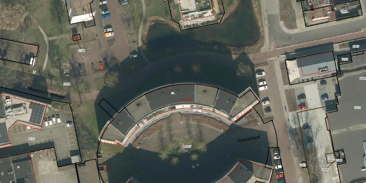 Het perceel waarop Princenlant 166 staat heeft een oppervlakte van 5705 m². Dit is een zeer groot perceel. De perceeloppervlakte wordt geregistreerd door het Kadaster. Gedetailleerde informatie over de maten van dit perceel kunt u vinden in het rapport Kadastrale kaart met maatvoering van Princenlant 166.