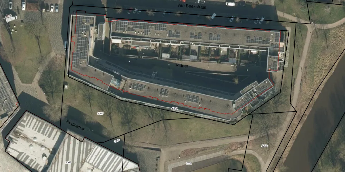 Het perceel waarop Ridder 53 staat heeft een oppervlakte van 6030 m². Dit is een zeer groot perceel. De perceeloppervlakte wordt geregistreerd door het Kadaster. Gedetailleerde informatie over de maten van dit perceel kunt u vinden in het rapport Kadastrale kaart met maatvoering van Ridder 53.