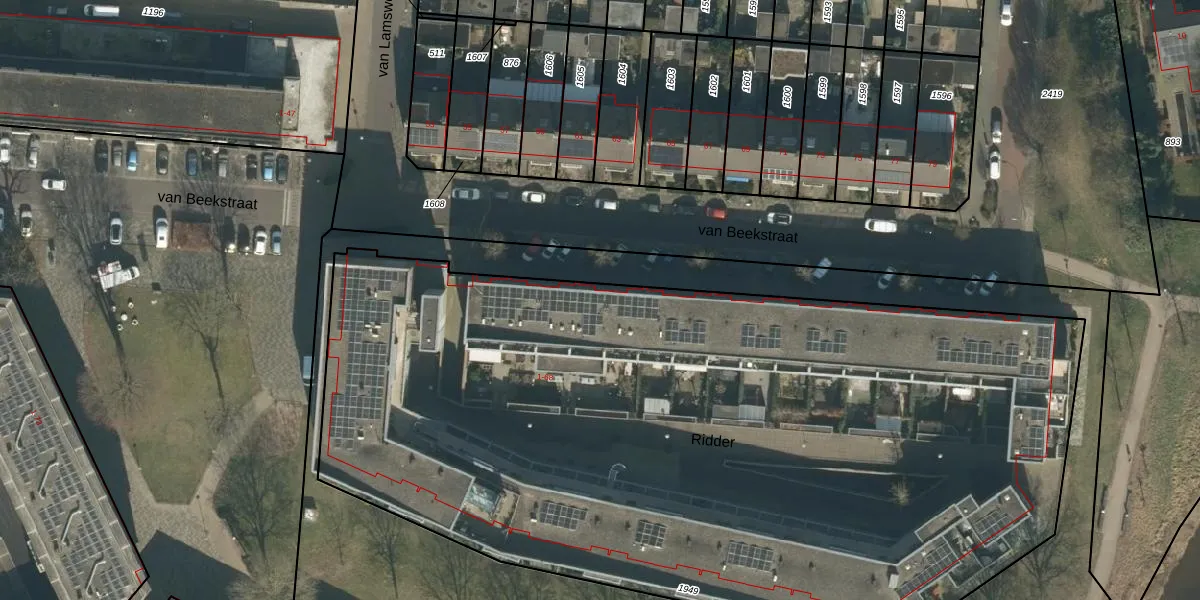 Het perceel waarop Ridder 6 staat heeft een oppervlakte van 6030 m². Dit is een zeer groot perceel. De perceeloppervlakte wordt geregistreerd door het Kadaster. Gedetailleerde informatie over de maten van dit perceel kunt u vinden in het rapport Kadastrale kaart met maatvoering van Ridder 6.
