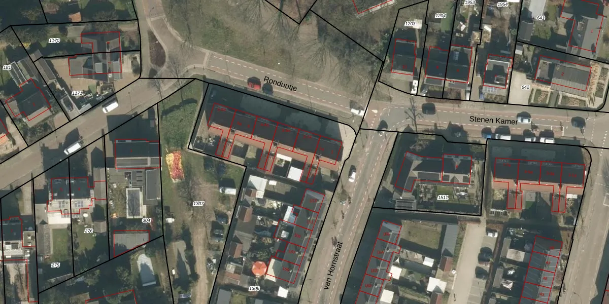 Het perceel waarop Ronduutje 2-a staat heeft een oppervlakte van 3288 m². Dit is een zeer groot perceel. De perceeloppervlakte wordt geregistreerd door het Kadaster. Gedetailleerde informatie over de maten van dit perceel kunt u vinden in het rapport Kadastrale kaart met maatvoering van Ronduutje 2-a.
