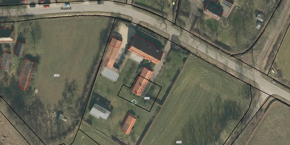 Het perceel waarop Roond 7 staat heeft een oppervlakte van 8660 m². Dit is een zeer groot perceel. De perceeloppervlakte wordt geregistreerd door het Kadaster. Gedetailleerde informatie over de maten van dit perceel kunt u vinden in het rapport Kadastrale kaart met maatvoering van Roond 7.