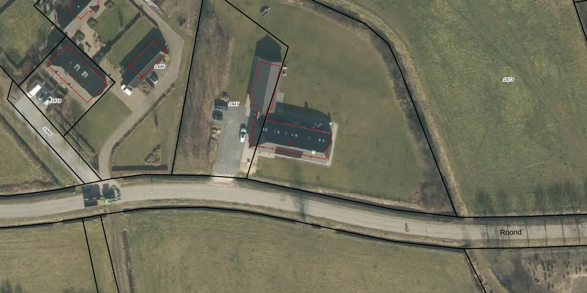 Het perceel waarop Roond 8-f staat heeft een oppervlakte van 6632 m². Dit is een zeer groot perceel. De perceeloppervlakte wordt geregistreerd door het Kadaster. Gedetailleerde informatie over de maten van dit perceel kunt u vinden in het rapport Kadastrale kaart met maatvoering van Roond 8-f.