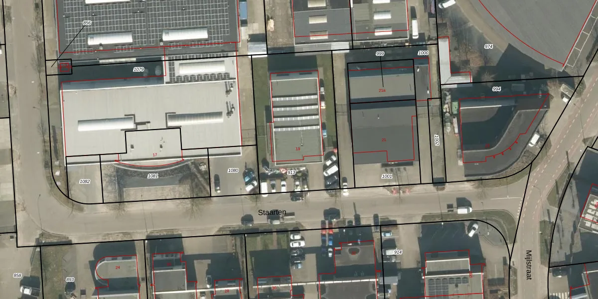 Staarten 19 is gelegen op kadastraal perceel BTL00L913. Deze kadastrale aanduiding is uniek en wordt gebruikt door het Kadaster om eigendomsrechten en andere zakelijke rechten vast te leggen. Het perceel maakt onderdeel uit van de kadastrale gemeente Boxtel.