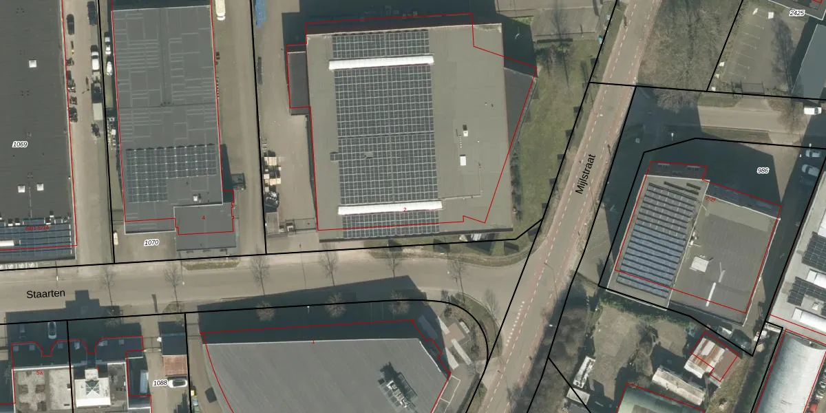 Het perceel waarop Staarten 2 staat heeft een oppervlakte van 6695 m². Dit is een zeer groot perceel. De perceeloppervlakte wordt geregistreerd door het Kadaster. Gedetailleerde informatie over de maten van dit perceel kunt u vinden in het rapport Kadastrale kaart met maatvoering van Staarten 2.