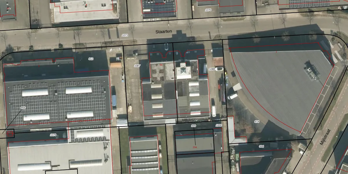 Staarten 5-a is gelegen op kadastraal perceel BTL00L1087. Deze kadastrale aanduiding is uniek en wordt gebruikt door het Kadaster om eigendomsrechten en andere zakelijke rechten vast te leggen. Het perceel maakt onderdeel uit van de kadastrale gemeente Boxtel.