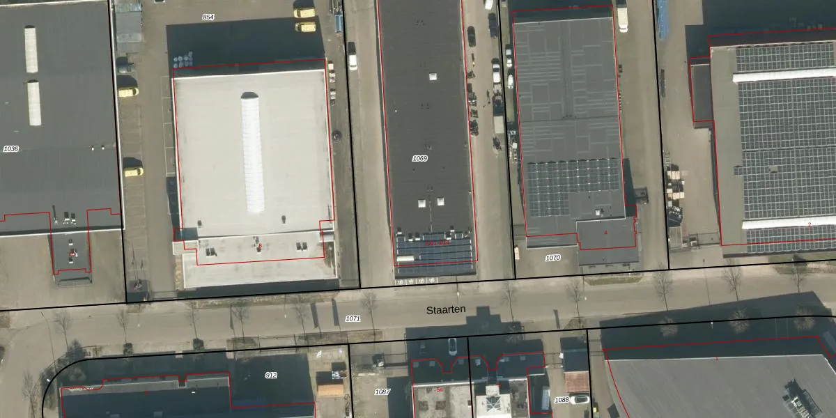 Het perceel waarop Staarten 6-13 staat heeft een oppervlakte van 3015 m². Dit is een zeer groot perceel. De perceeloppervlakte wordt geregistreerd door het Kadaster. Gedetailleerde informatie over de maten van dit perceel kunt u vinden in het rapport Kadastrale kaart met maatvoering van Staarten 6-13.