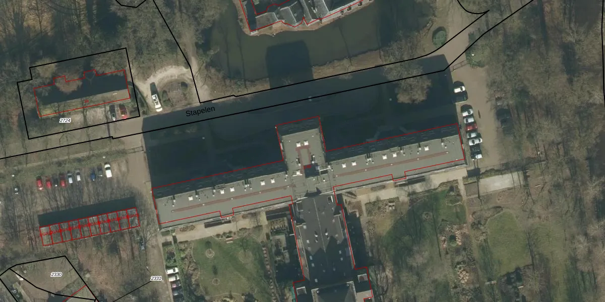 Het perceel waarop Stapelen 14 staat heeft een oppervlakte van 3,2 ha. Dit is een zeer groot perceel. De perceeloppervlakte wordt geregistreerd door het Kadaster. Gedetailleerde informatie over de maten van dit perceel kunt u vinden in het rapport Kadastrale kaart met maatvoering van Stapelen 14.