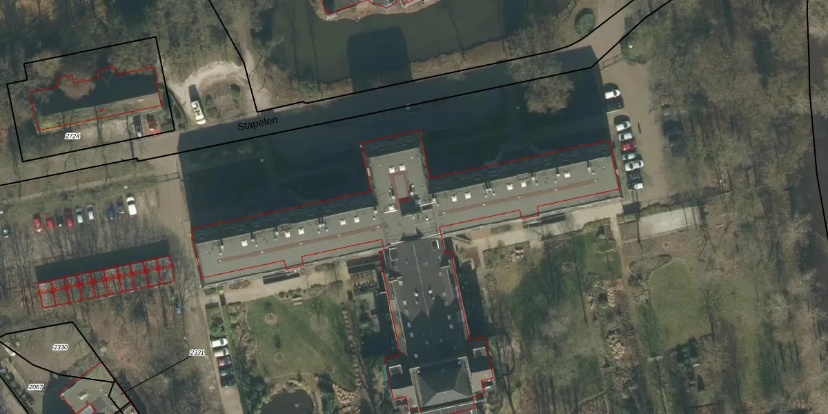 Het perceel waarop Stapelen 18 staat heeft een oppervlakte van 3,2 ha. Dit is een zeer groot perceel. De perceeloppervlakte wordt geregistreerd door het Kadaster. Gedetailleerde informatie over de maten van dit perceel kunt u vinden in het rapport Kadastrale kaart met maatvoering van Stapelen 18.