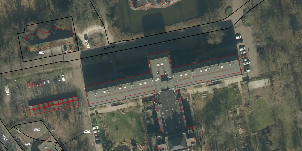 Het perceel waarop Stapelen 38 staat heeft een oppervlakte van 3,2 ha. Dit is een zeer groot perceel. De perceeloppervlakte wordt geregistreerd door het Kadaster. Gedetailleerde informatie over de maten van dit perceel kunt u vinden in het rapport Kadastrale kaart met maatvoering van Stapelen 38.