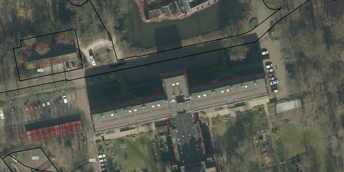 Het perceel waarop Stapelen 41 staat heeft een oppervlakte van 3,2 ha. Dit is een zeer groot perceel. De perceeloppervlakte wordt geregistreerd door het Kadaster. Gedetailleerde informatie over de maten van dit perceel kunt u vinden in het rapport Kadastrale kaart met maatvoering van Stapelen 41.