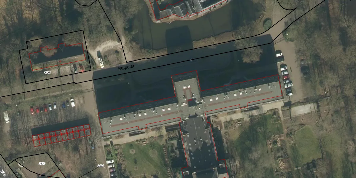 Het perceel waarop Stapelen 59 staat heeft een oppervlakte van 3,2 ha. Dit is een zeer groot perceel. De perceeloppervlakte wordt geregistreerd door het Kadaster. Gedetailleerde informatie over de maten van dit perceel kunt u vinden in het rapport Kadastrale kaart met maatvoering van Stapelen 59.