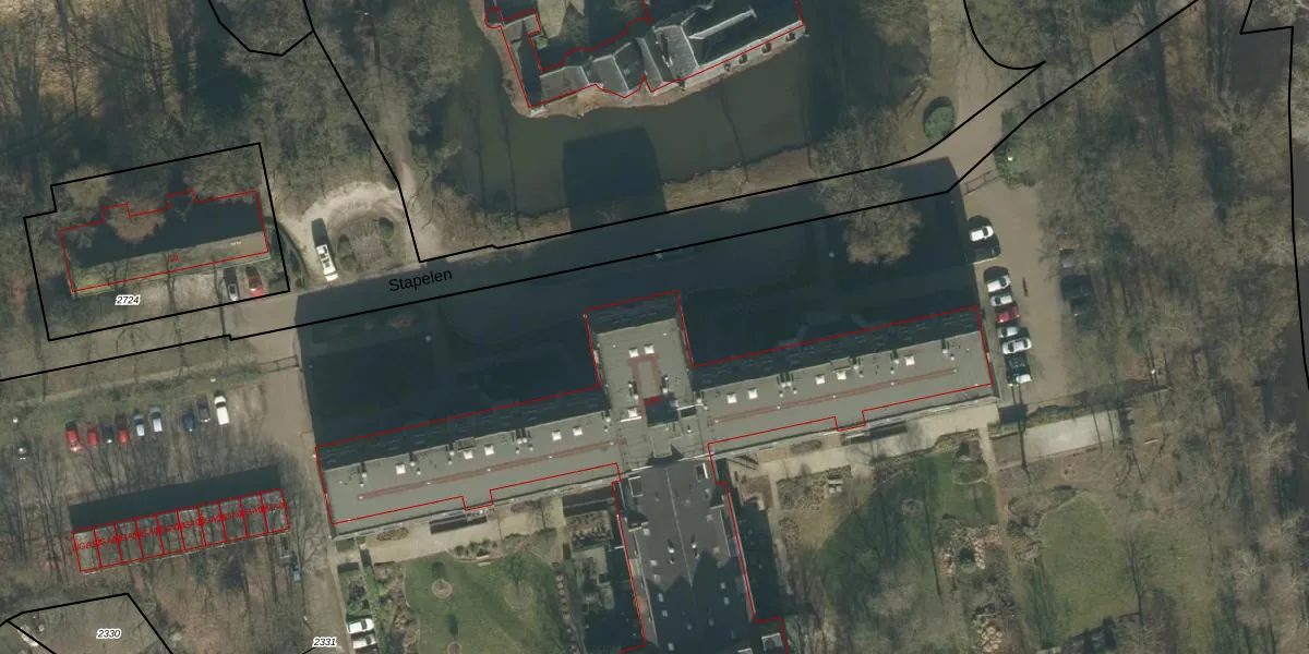 Het perceel waarop Stapelen 84 staat heeft een oppervlakte van 3,2 ha. Dit is een zeer groot perceel. De perceeloppervlakte wordt geregistreerd door het Kadaster. Gedetailleerde informatie over de maten van dit perceel kunt u vinden in het rapport Kadastrale kaart met maatvoering van Stapelen 84.