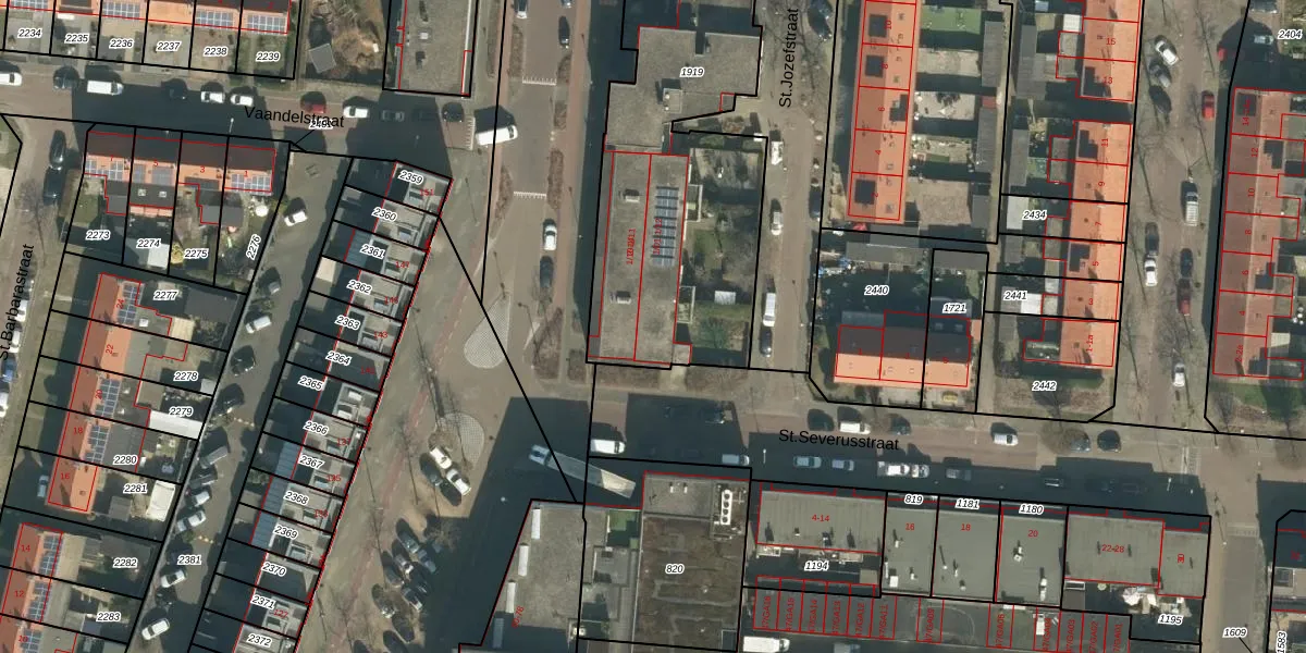 St.Jozefstraat 1-01 is gelegen op kadastraal perceel BTL00M1919. Deze kadastrale aanduiding is uniek en wordt gebruikt door het Kadaster om eigendomsrechten en andere zakelijke rechten vast te leggen. Het perceel maakt onderdeel uit van de kadastrale gemeente Boxtel.