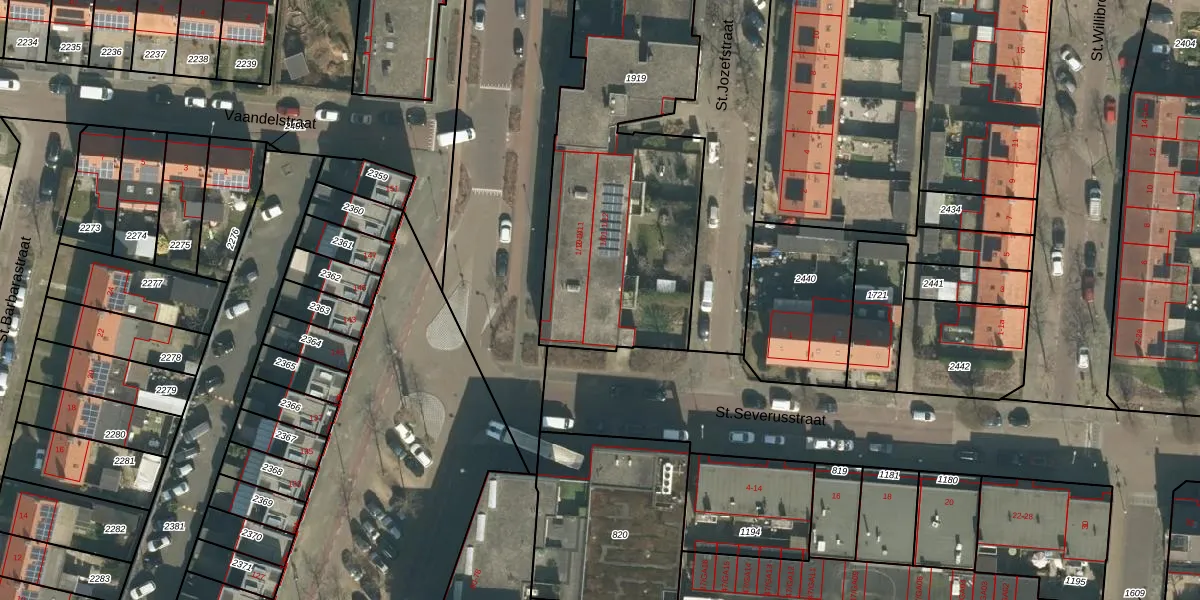 St.Jozefstraat 1-02 is gelegen op kadastraal perceel BTL00M1919. Deze kadastrale aanduiding is uniek en wordt gebruikt door het Kadaster om eigendomsrechten en andere zakelijke rechten vast te leggen. Het perceel maakt onderdeel uit van de kadastrale gemeente Boxtel.