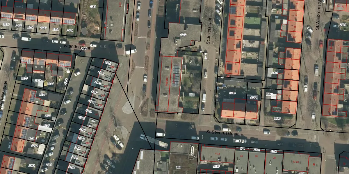 Het perceel waarop St.Jozefstraat 1-05 staat heeft een oppervlakte van 1871 m². Dit is een zeer groot perceel. De perceeloppervlakte wordt geregistreerd door het Kadaster. Gedetailleerde informatie over de maten van dit perceel kunt u vinden in het rapport Kadastrale kaart met maatvoering van St.Jozefstraat 1-05.