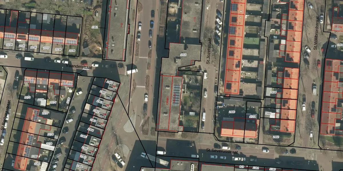 St.Jozefstraat 1-11 is gelegen op kadastraal perceel BTL00M1919. Deze kadastrale aanduiding is uniek en wordt gebruikt door het Kadaster om eigendomsrechten en andere zakelijke rechten vast te leggen. Het perceel maakt onderdeel uit van de kadastrale gemeente Boxtel.