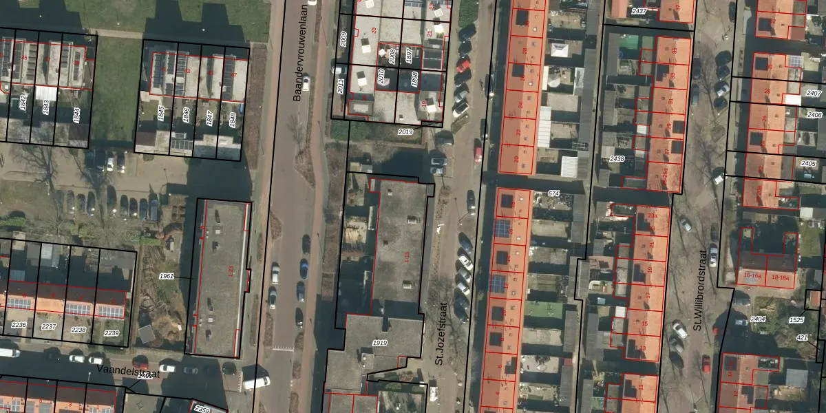 St.Jozefstraat 13 is gelegen op kadastraal perceel BTL00M1919. Deze kadastrale aanduiding is uniek en wordt gebruikt door het Kadaster om eigendomsrechten en andere zakelijke rechten vast te leggen. Het perceel maakt onderdeel uit van de kadastrale gemeente Boxtel.
