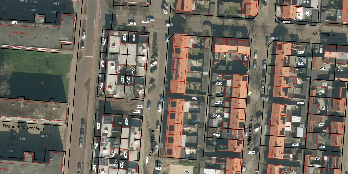 Het perceel waarop St.Jozefstraat 46 staat heeft een oppervlakte van 1820 m². Dit is een zeer groot perceel. De perceeloppervlakte wordt geregistreerd door het Kadaster. Gedetailleerde informatie over de maten van dit perceel kunt u vinden in het rapport Kadastrale kaart met maatvoering van St.Jozefstraat 46.