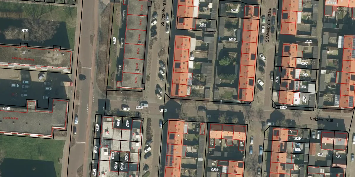 Het perceel waarop St.Jozefstraat 56 staat heeft een oppervlakte van 3451 m². Dit is een zeer groot perceel. De perceeloppervlakte wordt geregistreerd door het Kadaster. Gedetailleerde informatie over de maten van dit perceel kunt u vinden in het rapport Kadastrale kaart met maatvoering van St.Jozefstraat 56.