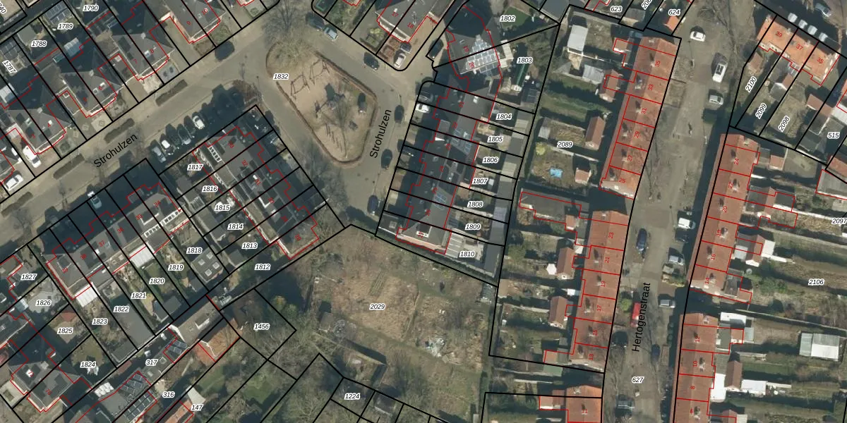 Het perceel waarop Strohulzen 26 staat heeft een oppervlakte van 162 m². Dit is een middelgroot perceel. De perceeloppervlakte wordt geregistreerd door het Kadaster. Gedetailleerde informatie over de maten van dit perceel kunt u vinden in het rapport Kadastrale kaart met maatvoering van Strohulzen 26.