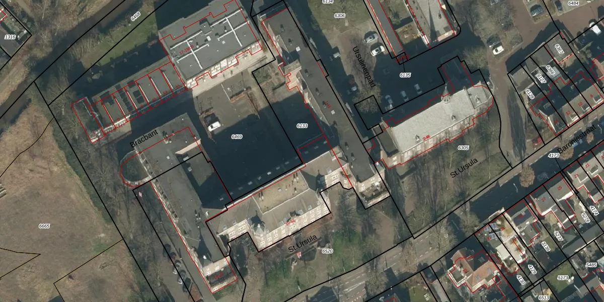 Het perceel waarop St.Ursula 32 staat heeft een oppervlakte van 1900 m². Dit is een zeer groot perceel. De perceeloppervlakte wordt geregistreerd door het Kadaster. Gedetailleerde informatie over de maten van dit perceel kunt u vinden in het rapport Kadastrale kaart met maatvoering van St.Ursula 32.