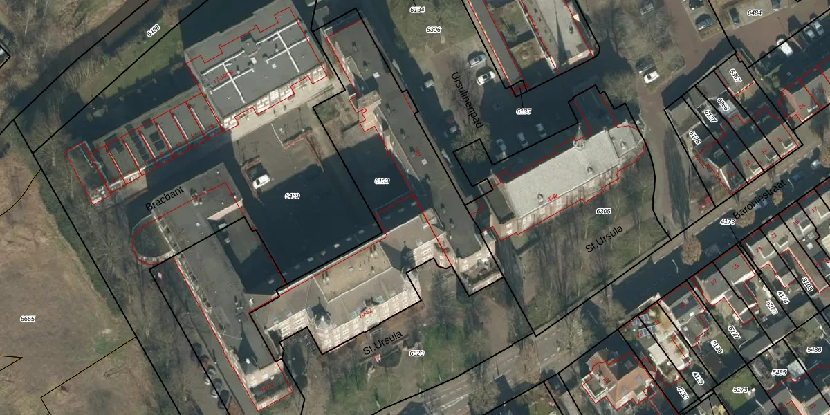 Het perceel waarop St.Ursula 46 staat heeft een oppervlakte van 1900 m². Dit is een zeer groot perceel. De perceeloppervlakte wordt geregistreerd door het Kadaster. Gedetailleerde informatie over de maten van dit perceel kunt u vinden in het rapport Kadastrale kaart met maatvoering van St.Ursula 46.
