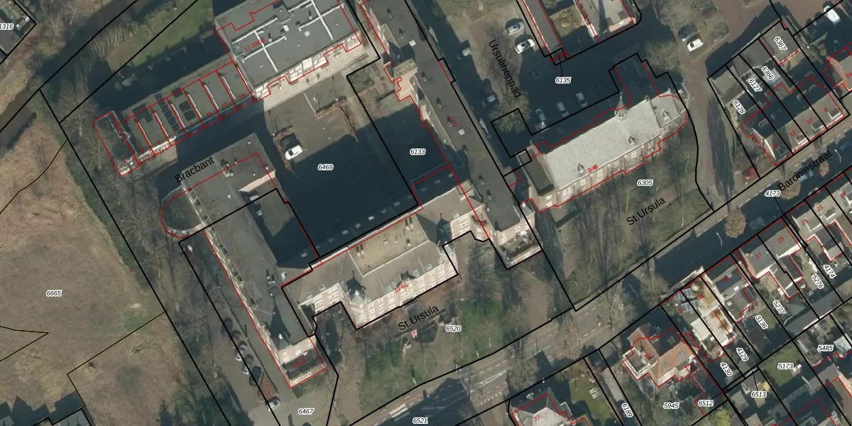 Het perceel waarop St.Ursula 56 staat heeft een oppervlakte van 1900 m². Dit is een zeer groot perceel. De perceeloppervlakte wordt geregistreerd door het Kadaster. Gedetailleerde informatie over de maten van dit perceel kunt u vinden in het rapport Kadastrale kaart met maatvoering van St.Ursula 56.