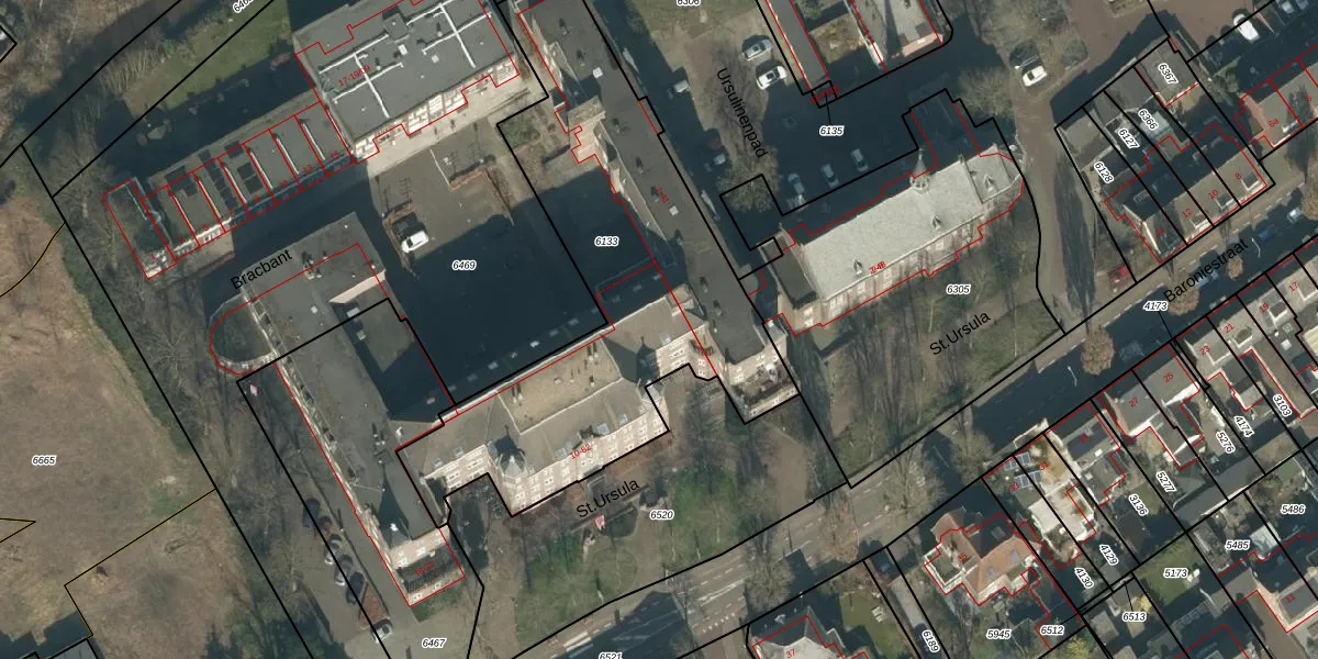 Het perceel waarop St.Ursula 66 staat heeft een oppervlakte van 1900 m². Dit is een zeer groot perceel. De perceeloppervlakte wordt geregistreerd door het Kadaster. Gedetailleerde informatie over de maten van dit perceel kunt u vinden in het rapport Kadastrale kaart met maatvoering van St.Ursula 66.
