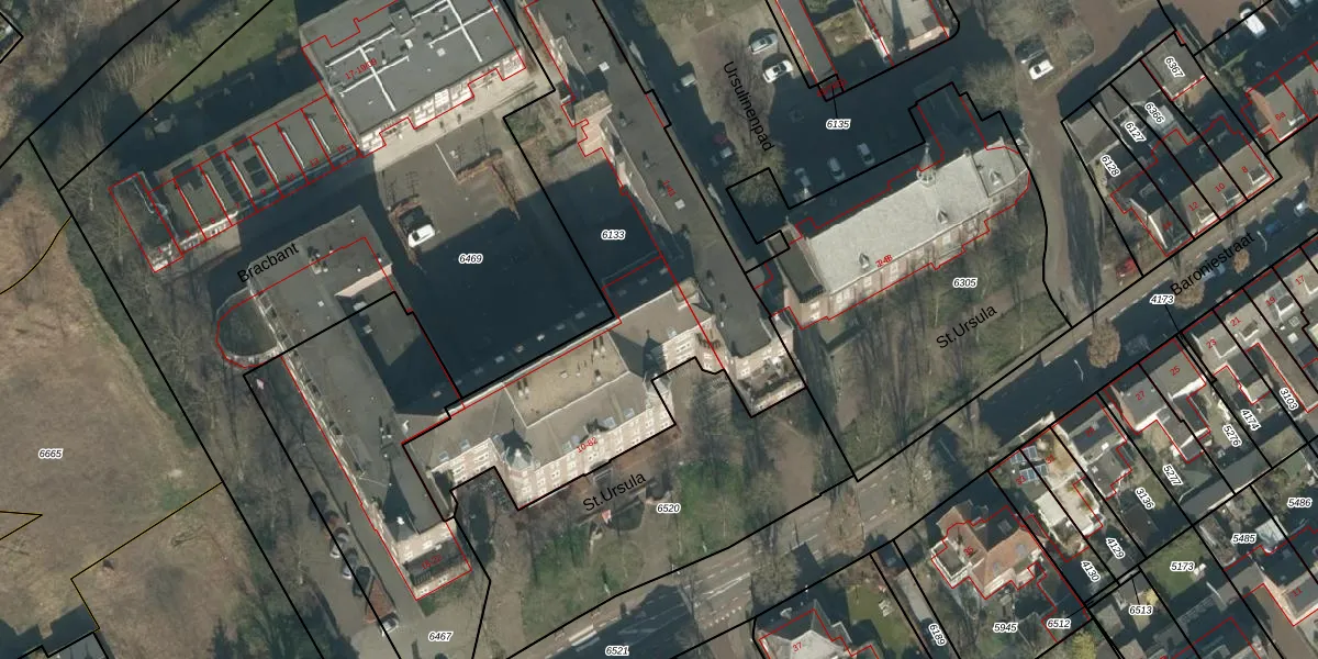 Het perceel waarop St.Ursula 68 staat heeft een oppervlakte van 1900 m². Dit is een zeer groot perceel. De perceeloppervlakte wordt geregistreerd door het Kadaster. Gedetailleerde informatie over de maten van dit perceel kunt u vinden in het rapport Kadastrale kaart met maatvoering van St.Ursula 68.