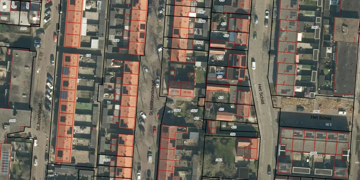 St.Willibrordstraat 16-a is gelegen op kadastraal perceel BTL00M2404. Deze kadastrale aanduiding is uniek en wordt gebruikt door het Kadaster om eigendomsrechten en andere zakelijke rechten vast te leggen. Het perceel maakt onderdeel uit van de kadastrale gemeente Boxtel.