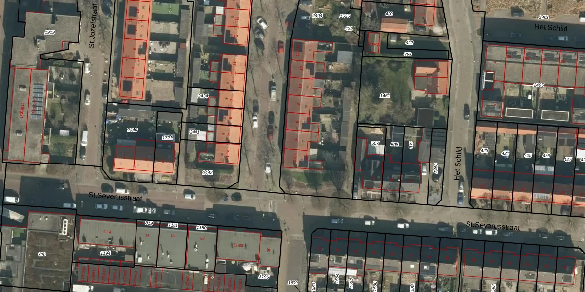 Het perceel waarop St.Willibrordstraat 4 staat heeft een oppervlakte van 2340 m². Dit is een zeer groot perceel. De perceeloppervlakte wordt geregistreerd door het Kadaster. Gedetailleerde informatie over de maten van dit perceel kunt u vinden in het rapport Kadastrale kaart met maatvoering van St.Willibrordstraat 4.
