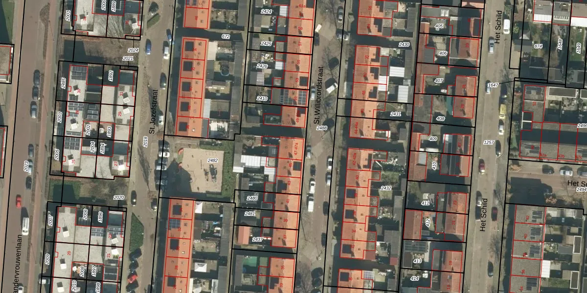 St.Willibrordstraat 47-a is gelegen op kadastraal perceel BTL00M2482. Deze kadastrale aanduiding is uniek en wordt gebruikt door het Kadaster om eigendomsrechten en andere zakelijke rechten vast te leggen. Het perceel maakt onderdeel uit van de kadastrale gemeente Boxtel.