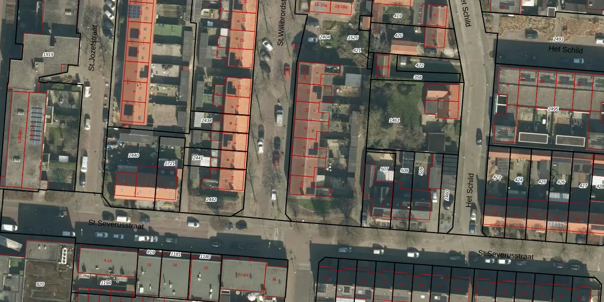 Het perceel waarop St.Willibrordstraat 6 staat heeft een oppervlakte van 2340 m². Dit is een zeer groot perceel. De perceeloppervlakte wordt geregistreerd door het Kadaster. Gedetailleerde informatie over de maten van dit perceel kunt u vinden in het rapport Kadastrale kaart met maatvoering van St.Willibrordstraat 6.