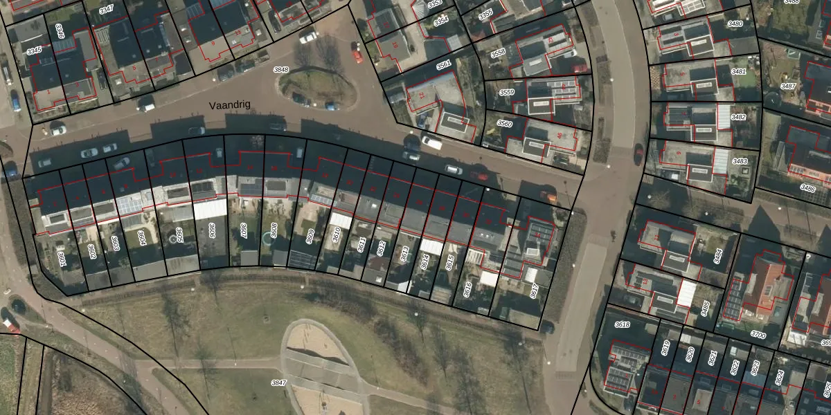 Het perceel waarop Vaandrig 26 staat heeft een oppervlakte van 174 m². Dit is een middelgroot perceel. De perceeloppervlakte wordt geregistreerd door het Kadaster. Gedetailleerde informatie over de maten van dit perceel kunt u vinden in het rapport Kadastrale kaart met maatvoering van Vaandrig 26.