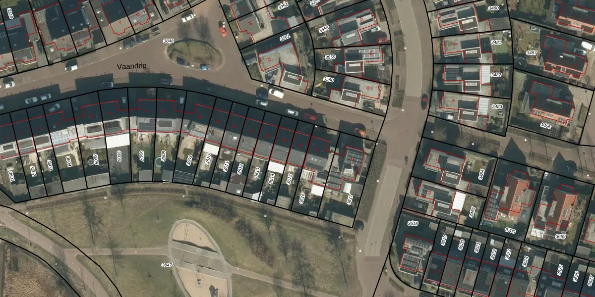 Vaandrig 30 is gelegen op kadastraal perceel BTL00B3615. Deze kadastrale aanduiding is uniek en wordt gebruikt door het Kadaster om eigendomsrechten en andere zakelijke rechten vast te leggen. Het perceel maakt onderdeel uit van de kadastrale gemeente Boxtel.