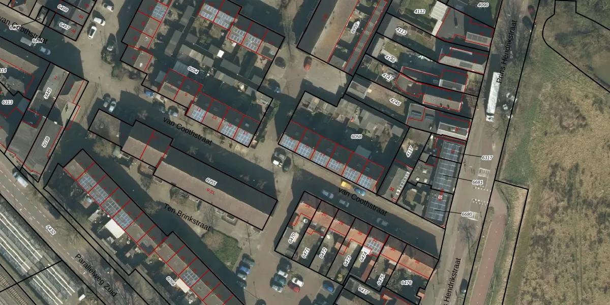 Het perceel waarop van Coothstraat 21 staat heeft een oppervlakte van 827 m². Dit is een groot perceel. De perceeloppervlakte wordt geregistreerd door het Kadaster. Gedetailleerde informatie over de maten van dit perceel kunt u vinden in het rapport Kadastrale kaart met maatvoering van van Coothstraat 21.