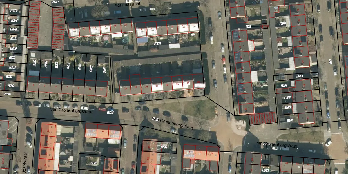 Het perceel waarop van Cronenborgstraat 25 staat heeft een oppervlakte van 3544 m². Dit is een zeer groot perceel. De perceeloppervlakte wordt geregistreerd door het Kadaster. Gedetailleerde informatie over de maten van dit perceel kunt u vinden in het rapport Kadastrale kaart met maatvoering van van Cronenborgstraat 25.