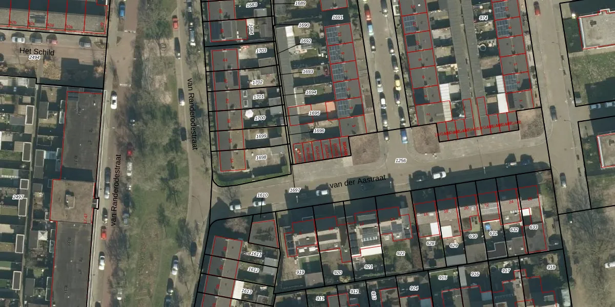 Het perceel waarop van der Aastraat 8-GA02 staat heeft een oppervlakte van 2286 m². Dit is een zeer groot perceel. De perceeloppervlakte wordt geregistreerd door het Kadaster. Gedetailleerde informatie over de maten van dit perceel kunt u vinden in het rapport Kadastrale kaart met maatvoering van van der Aastraat 8-GA02.