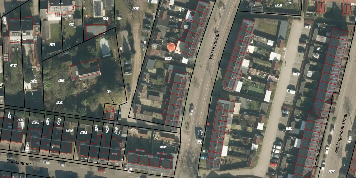 van Hornstraat 101 is gelegen op kadastraal perceel BTL00M1306. Deze kadastrale aanduiding is uniek en wordt gebruikt door het Kadaster om eigendomsrechten en andere zakelijke rechten vast te leggen. Het perceel maakt onderdeel uit van de kadastrale gemeente Boxtel.