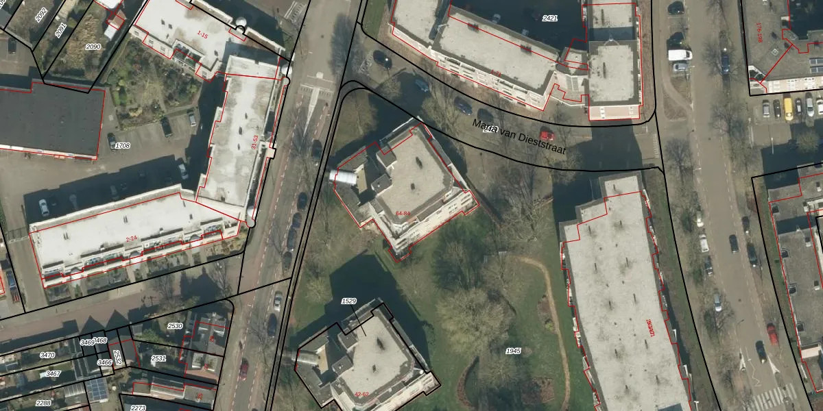 Het perceel waarop van Hornstraat 68 staat heeft een oppervlakte van 1,0 ha. Dit is een zeer groot perceel. De perceeloppervlakte wordt geregistreerd door het Kadaster. Gedetailleerde informatie over de maten van dit perceel kunt u vinden in het rapport Kadastrale kaart met maatvoering van van Hornstraat 68.