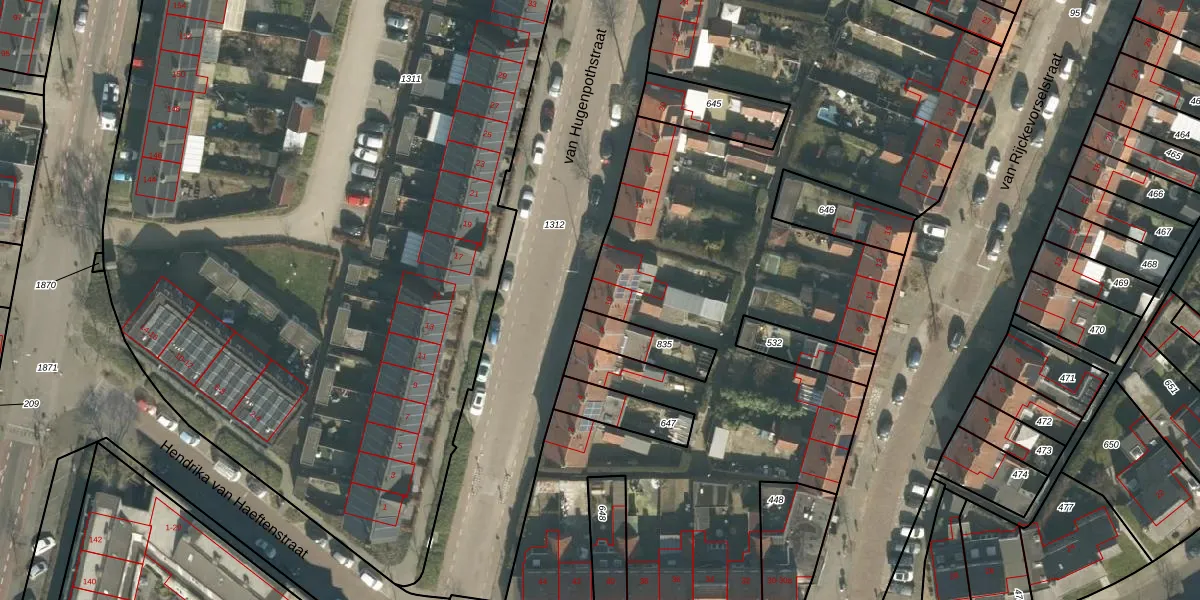 Het perceel waarop van Hugenpothstraat 10 staat heeft een oppervlakte van 6145 m². Dit is een zeer groot perceel. De perceeloppervlakte wordt geregistreerd door het Kadaster. Gedetailleerde informatie over de maten van dit perceel kunt u vinden in het rapport Kadastrale kaart met maatvoering van van Hugenpothstraat 10.