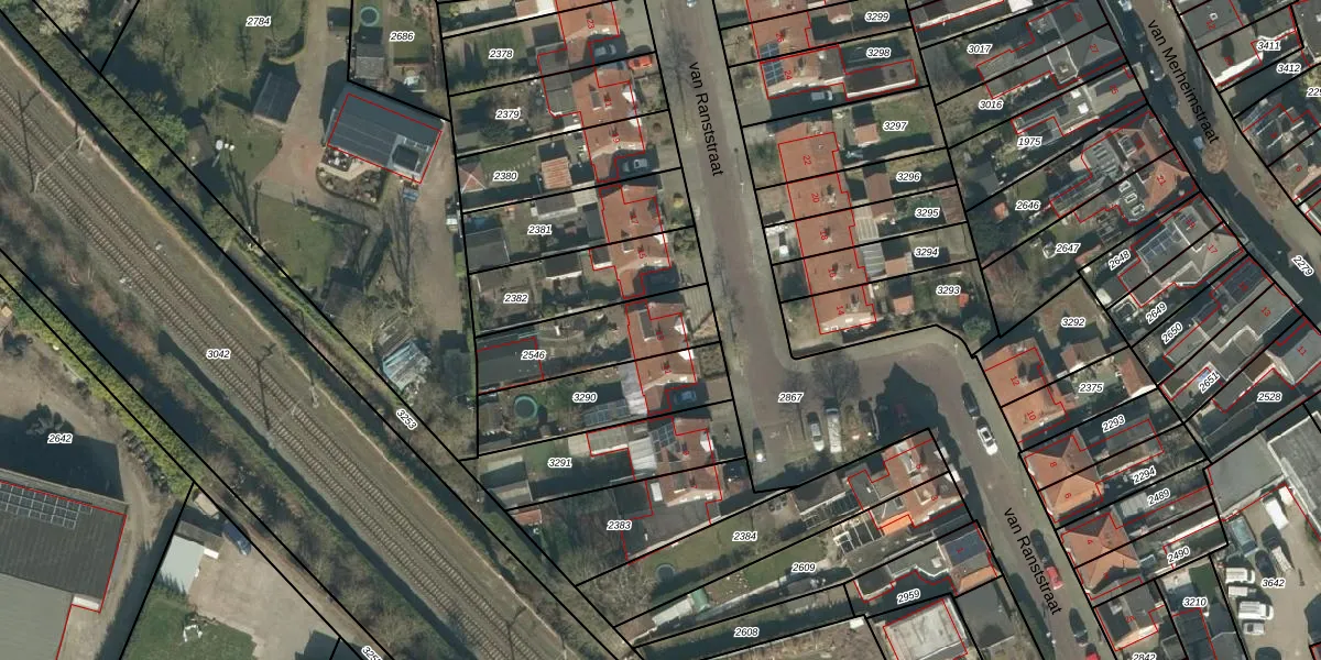 Gebruik de zoekbalk of klik op een perceel voor informatie over de adressen binnen dit perceel.
