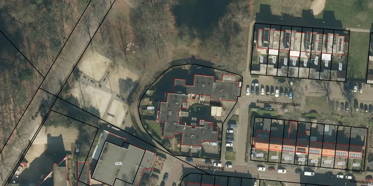 Het perceel waarop Vendelhof 18 staat heeft een oppervlakte van 2055 m². Dit is een zeer groot perceel. De perceeloppervlakte wordt geregistreerd door het Kadaster. Gedetailleerde informatie over de maten van dit perceel kunt u vinden in het rapport Kadastrale kaart met maatvoering van Vendelhof 18.