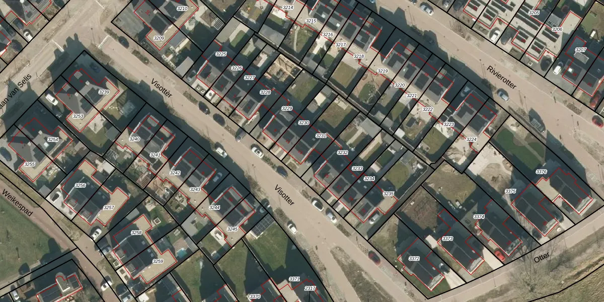 Het perceel waarop Visotter 13 staat heeft een oppervlakte van 259 m². Dit is een middelgroot perceel. De perceeloppervlakte wordt geregistreerd door het Kadaster. Gedetailleerde informatie over de maten van dit perceel kunt u vinden in het rapport Kadastrale kaart met maatvoering van Visotter 13.