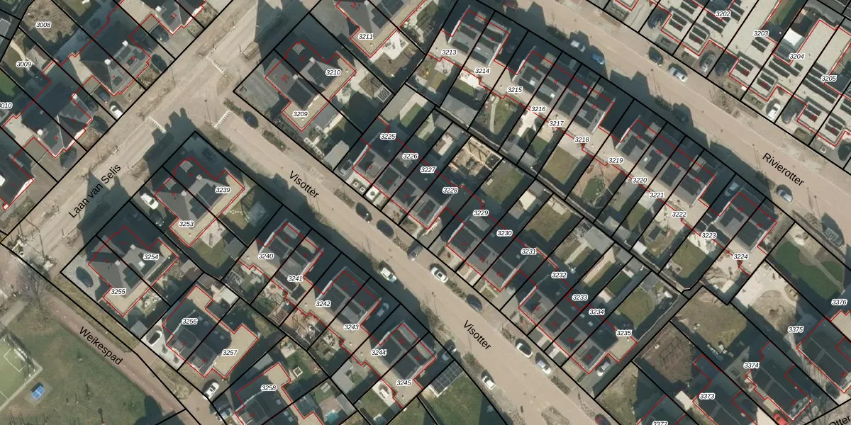 Het perceel waarop Visotter 7 staat heeft een oppervlakte van 251 m². Dit is een middelgroot perceel. De perceeloppervlakte wordt geregistreerd door het Kadaster. Gedetailleerde informatie over de maten van dit perceel kunt u vinden in het rapport Kadastrale kaart met maatvoering van Visotter 7.